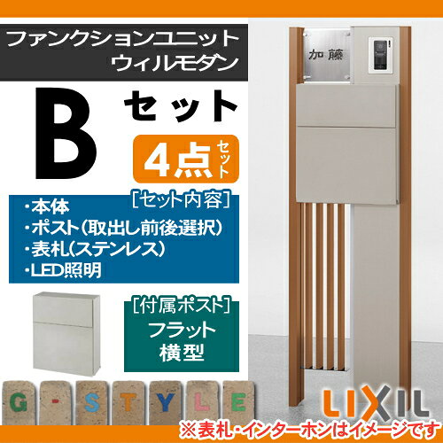 【無料プレゼント対象商品】 機能門柱 ポスト LIXIL リクシル TOEXファンクションユニット ウィルモダン Bセット 照明付き ポスト エクスポストフラット横型ポスト 機能ポール+表札(ネームシールタイプ)+ポスト+LED照明 機能ポール