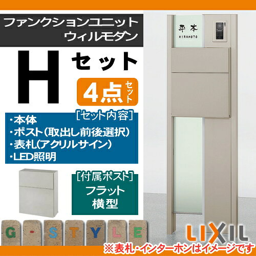 【無料プレゼント対象商品】 機能門柱 ポスト LIXIL リクシル TOEXファンクションユニット ウィルモダン Hセット 照明付き ポスト エクスポストフラット横型ポスト 機能ポール+表札(ネームシールタイプ)+ポスト+LED照明 機能ポール