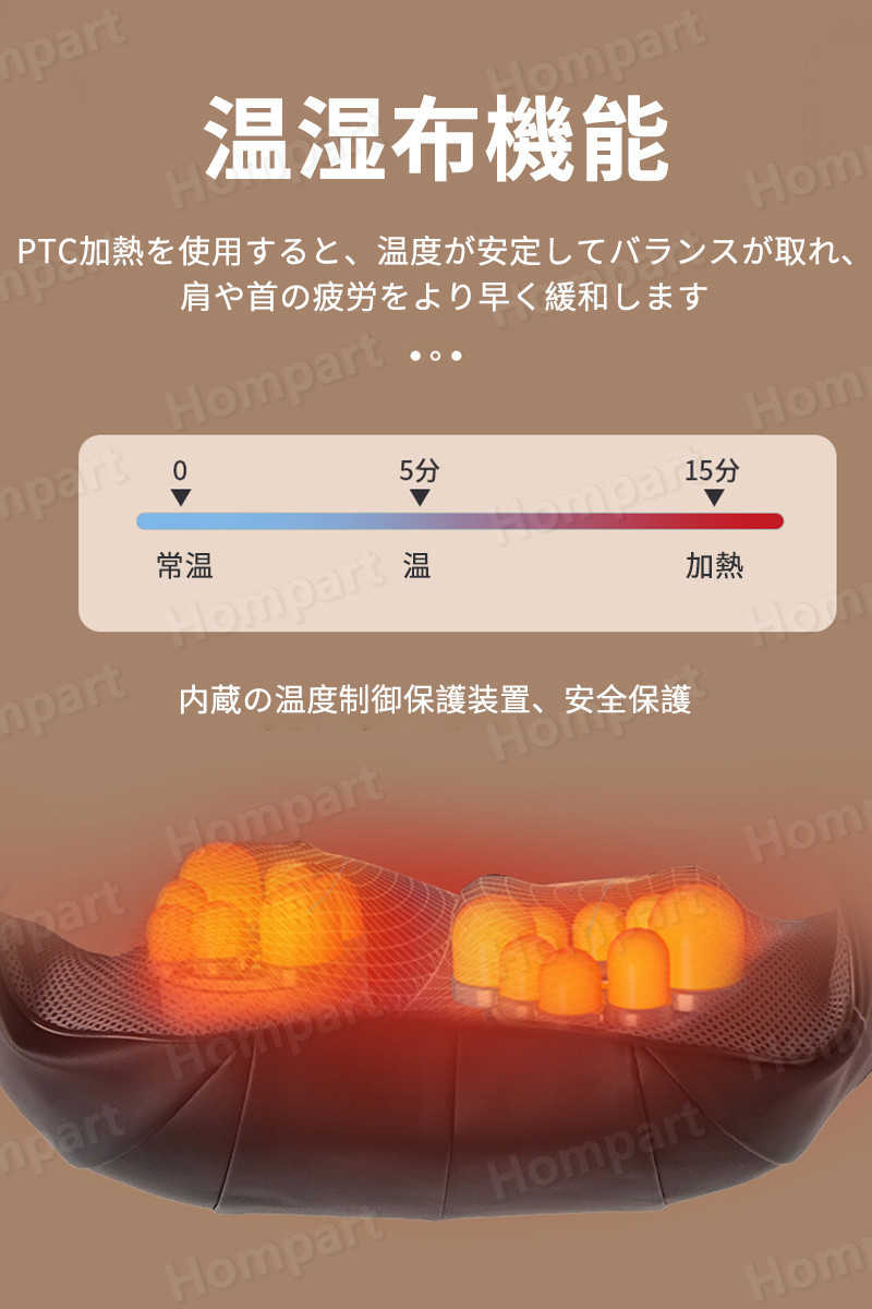商品名:揉みマッサージショール 商品サイズ:長さ:120cm幅:17cm 重量:約1.2kg 機能:捏ね、指圧、推拿 定格電圧:12v 定格電力:24w 定格時間:15分 原産国:中国