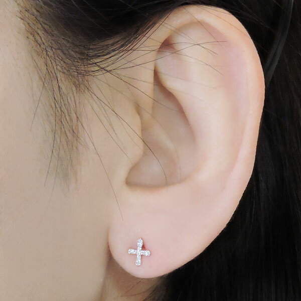 【8/31 23:59まで ポイント10倍!】ダイヤモンド ピアス クロスピアス ダイヤモンドピアス ダイヤピアス ダイヤ k18 18金 18k ホワイトゴールド スタッドピアス 十字架 レディース メンズ ユニセックス 送料無料 普段使い プレゼント ギフト 自分買い