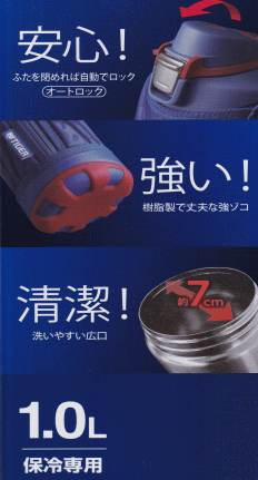 タイガー魔法瓶 水筒 直飲み 保冷専用 ステンレスボトル サハラクール MME-F100-AK ブルー 1.0L 子供 製品特徴 ■大きな氷も入れやすい!口径約7cmの広口ボトル ■汚れにくく、ニオイがつきにくい「スーパークリーン」加工だから、スポーツドリンクもOK(使用後はすぐにお手入れしてください) ■ポーチ底部は樹脂製で、衝撃に強く頑丈な強ゾコ(つよぞこ) ■ 水筒 直飲み 保冷専用 ■【製品仕様】 ■サイズ:8.7×9.5×24.1cm(ポーチを含まない) ■本体質量:約0.5kg ■実容量:1.0L ■保冷効力(6時間:9度以下) ■口径:約7.0cm ■名前が書けるネームタグき ■ワンタッチで着脱できるベルト付き いつも清潔にお使いいただけます。