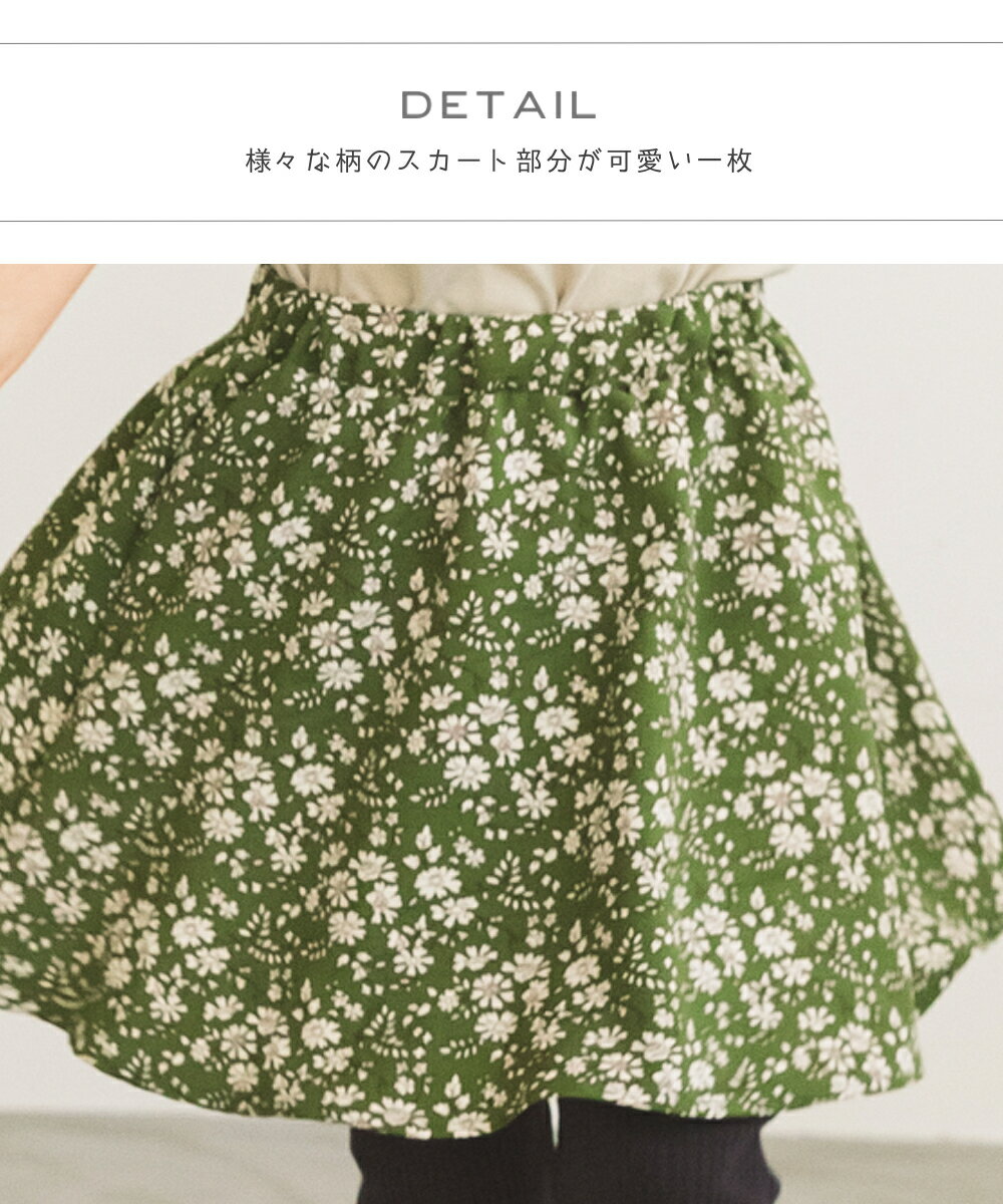 ●サイズ90cm(総丈33.5cm ウエスト42cm スカート丈23.5cm)100cm(総丈38.5cm ウエスト44cm スカート丈26cm)110cm(総丈44cm ウエスト46cm スカート丈27cm)120cm(総丈49.5cm ウエスト48cm スカート丈29cm)130cm(総丈55cm ウエスト50cm スカート丈31cm)140cm(総丈60.5cm ウエスト52cm スカート丈33cm)150cm(総丈66cm ウエスト55cm スカート丈36cm) ●素材BLACK-IVORY, BLUEGRAYFLOWER, LTBEIGE-1, IVORY-3, LTPINK, BLACK-1, BLUEFLOWER, GREEN_本体_綿100% スカート部分_ポリエステル100% IVORY-2,PURPLECHECK, WHITEDOT, BEIGEDOT, GRAYCHECK, GRAYPINK, IVORYFLOWER, WHITEFLOWER_本体_綿100% スカート部分_綿100% BLACKWHITE_本体_綿100% スカート部分_レーヨン100% BLUE, PINKGEIGE_本体_綿100% スカート部分_綿60%, レーヨン40% PINK-1, _本体_綿100% スカート部分_綿50%, ポリエステル50% ●ポケットなし ●伸縮性少しあり ●透け感なし ●裏地なし ●クリーニング洗濯機洗い可(ネット使用) ●生産国中国 【アイテム/ジャンル/タイプ】 ナチュラル オシャレ シンプル きれいめ キレイ かわいい 大人かわいい 大人可愛い 大人っぽい おしゃれ プチプラ 安い 激安 親子お揃い お揃い リンク リンクコーデ ママリンク ママリンクコーデ 韓国子供服 韓国 キッズ トドラー 幼稚園 保育園 小学校 フェミニン ガーリー 通園 おでかけ 新作